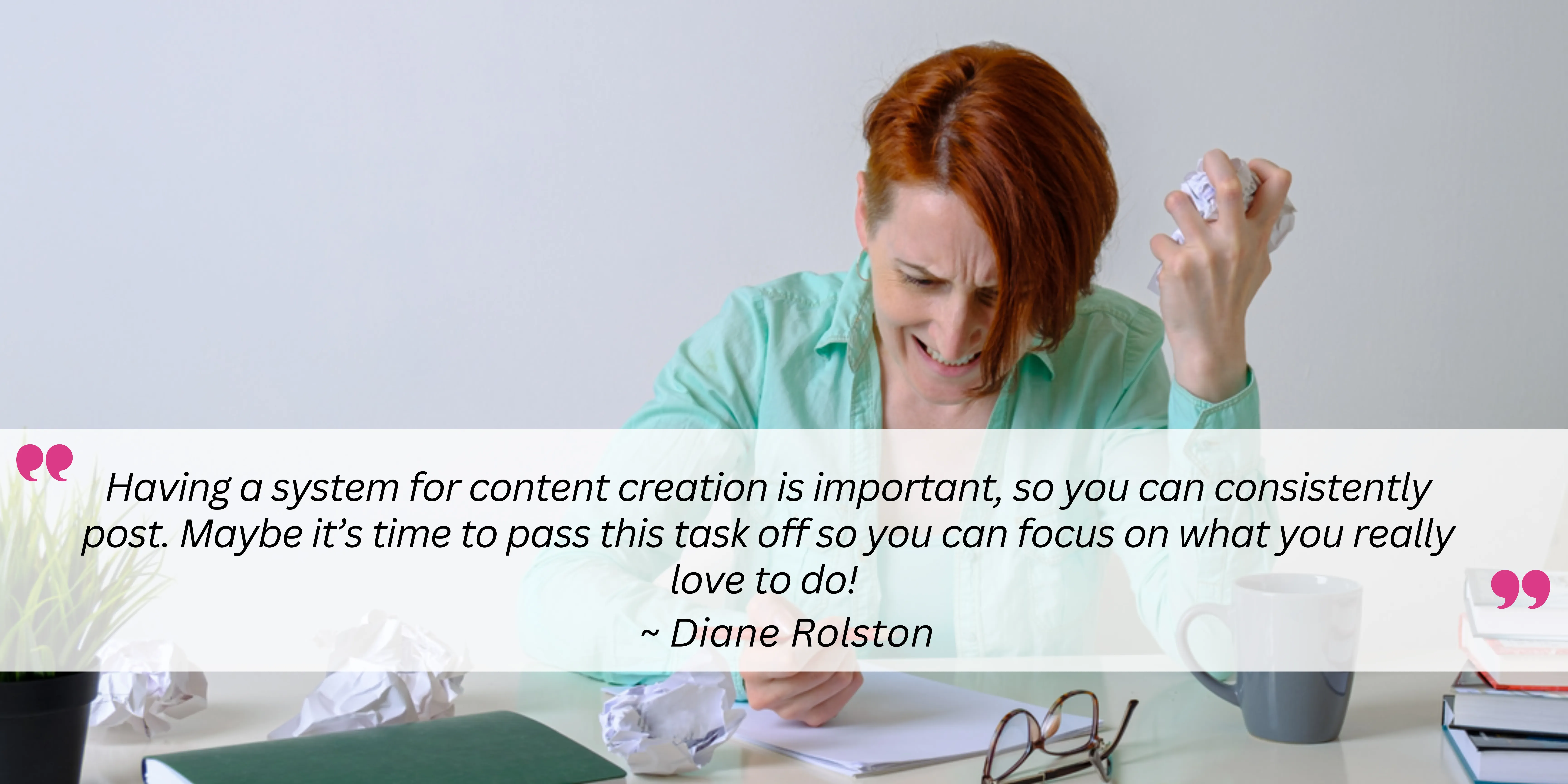 Having a system for content creation is important, so you can consistently post. Maybe it’s time to pass this task off so you can focus on what you really love to do! Read the P.S. below to know how.