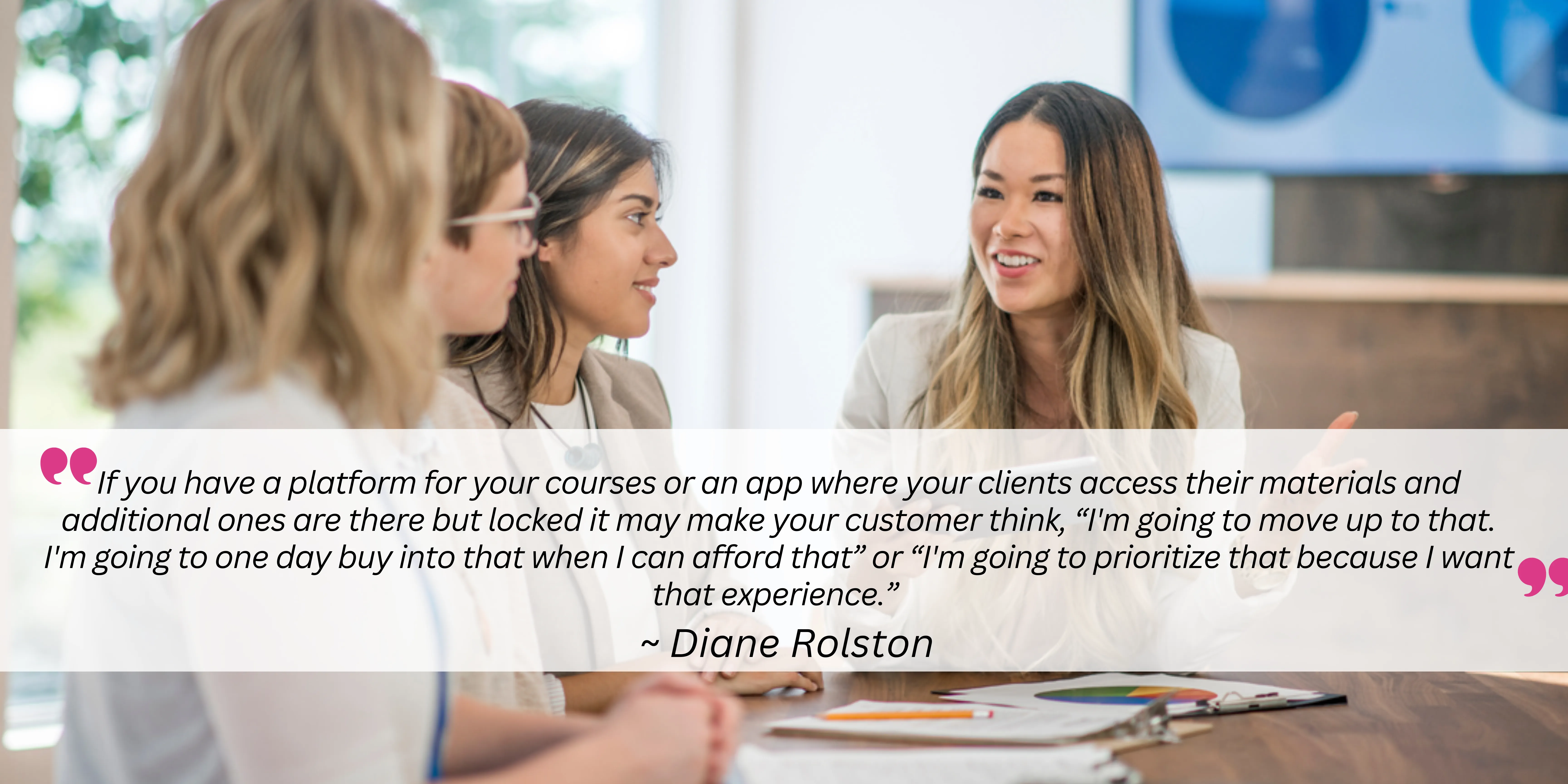 If you have a platform for your courses or an app where your clients access their materials and additional ones are there but locked it may make your customer think, “I'm going to move up to that. I'm going to one day buy into that when I can afford that” or “I'm going to prioritize that because I want that experience.” Maybe it's “I want that VIP experience” or “I want those opportunities.”