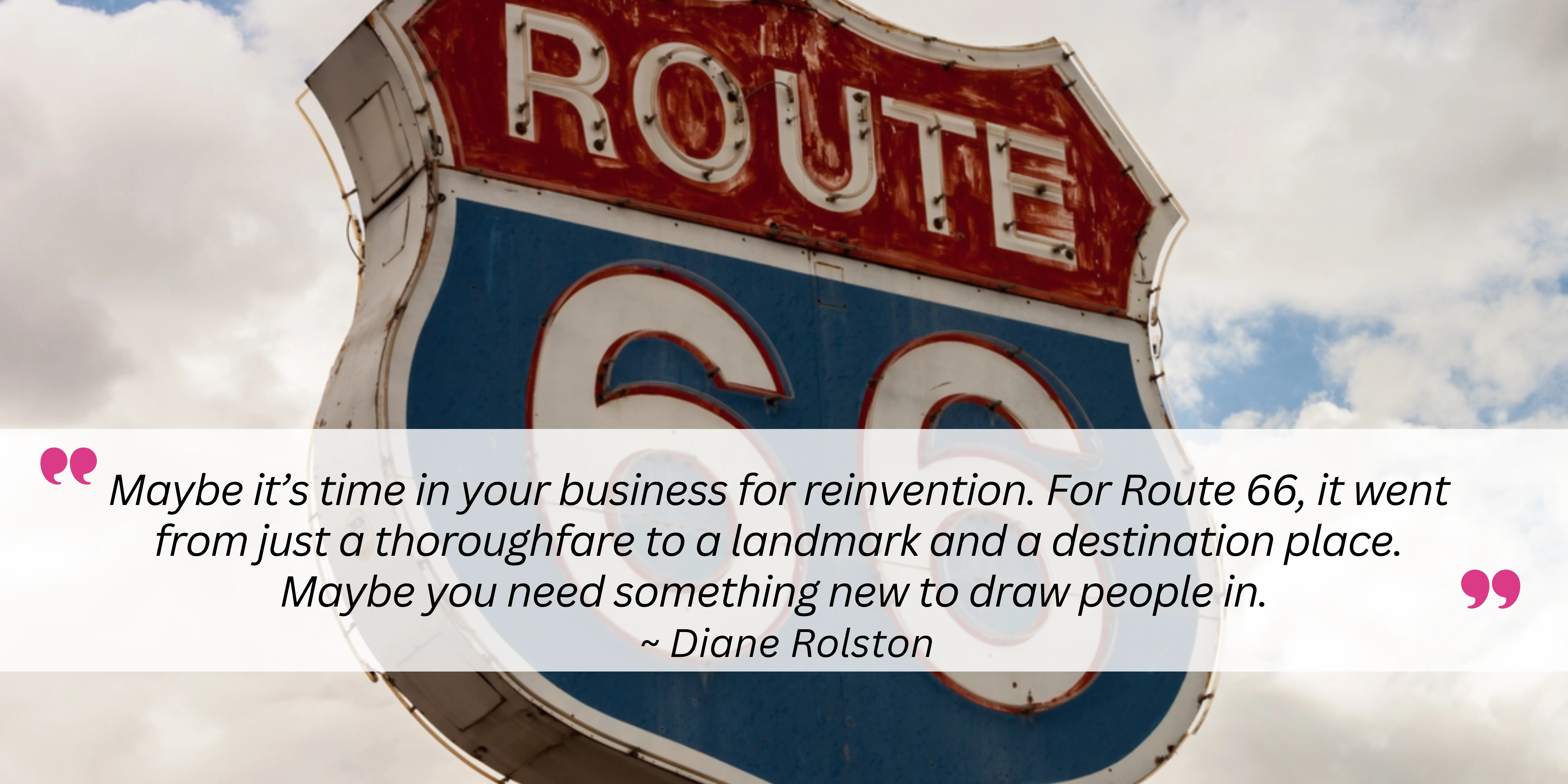Maybe it’s time in your business for reinvention. For Route 66, it went from just a thoroughfare to a landmark and a destination place. Maybe you need something new to draw people in.