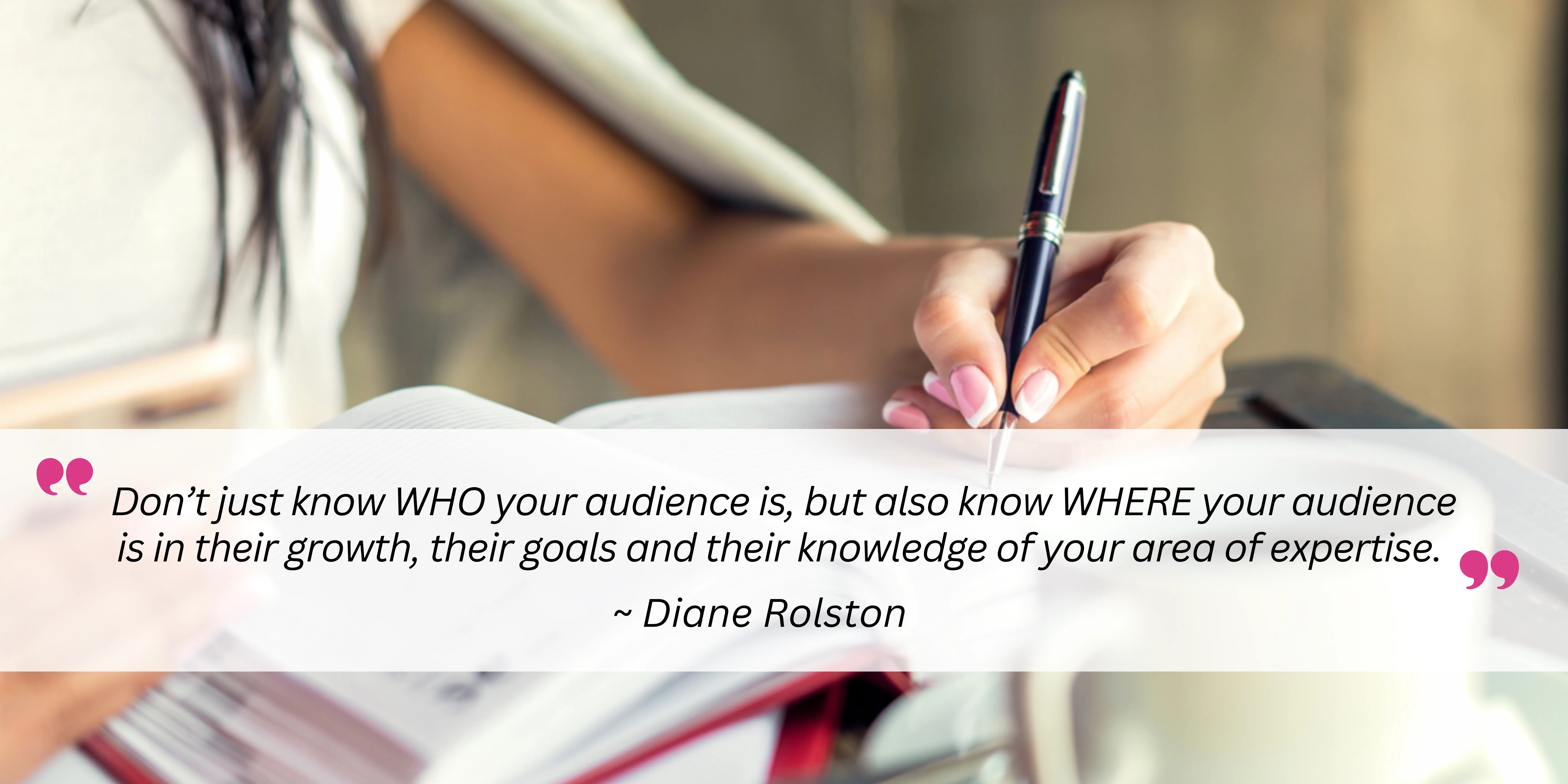 Don’t just know WHO your audience is, but also know WHERE your audience is in their growth, their goals and their knowledge of your area of expertise. You can ask yourself these questions: