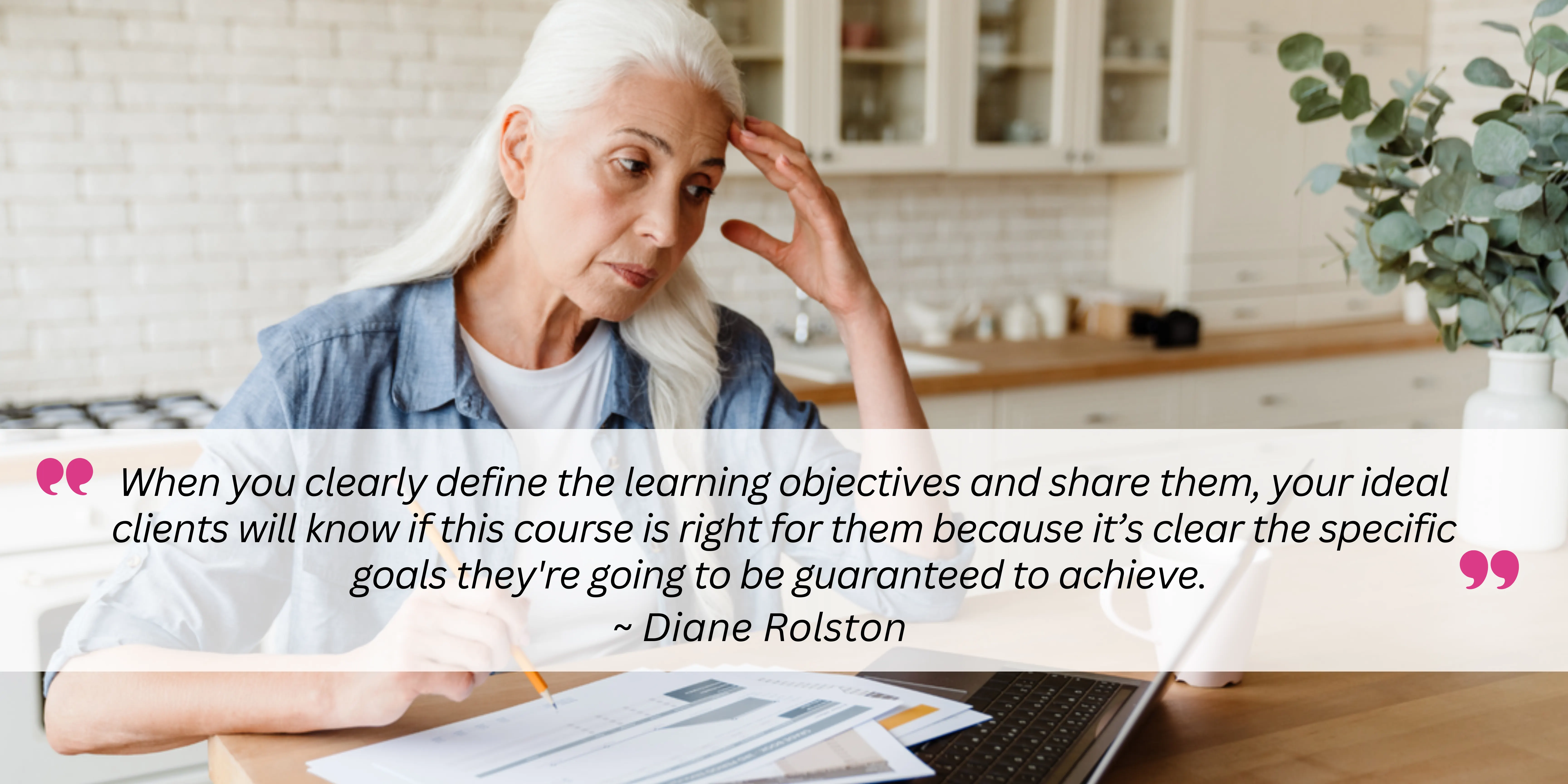 When you clearly define the learning objectives and share them, your ideal clients will know if this course is right for them because it’s clear the specific goals they're going to be guaranteed to achieve.