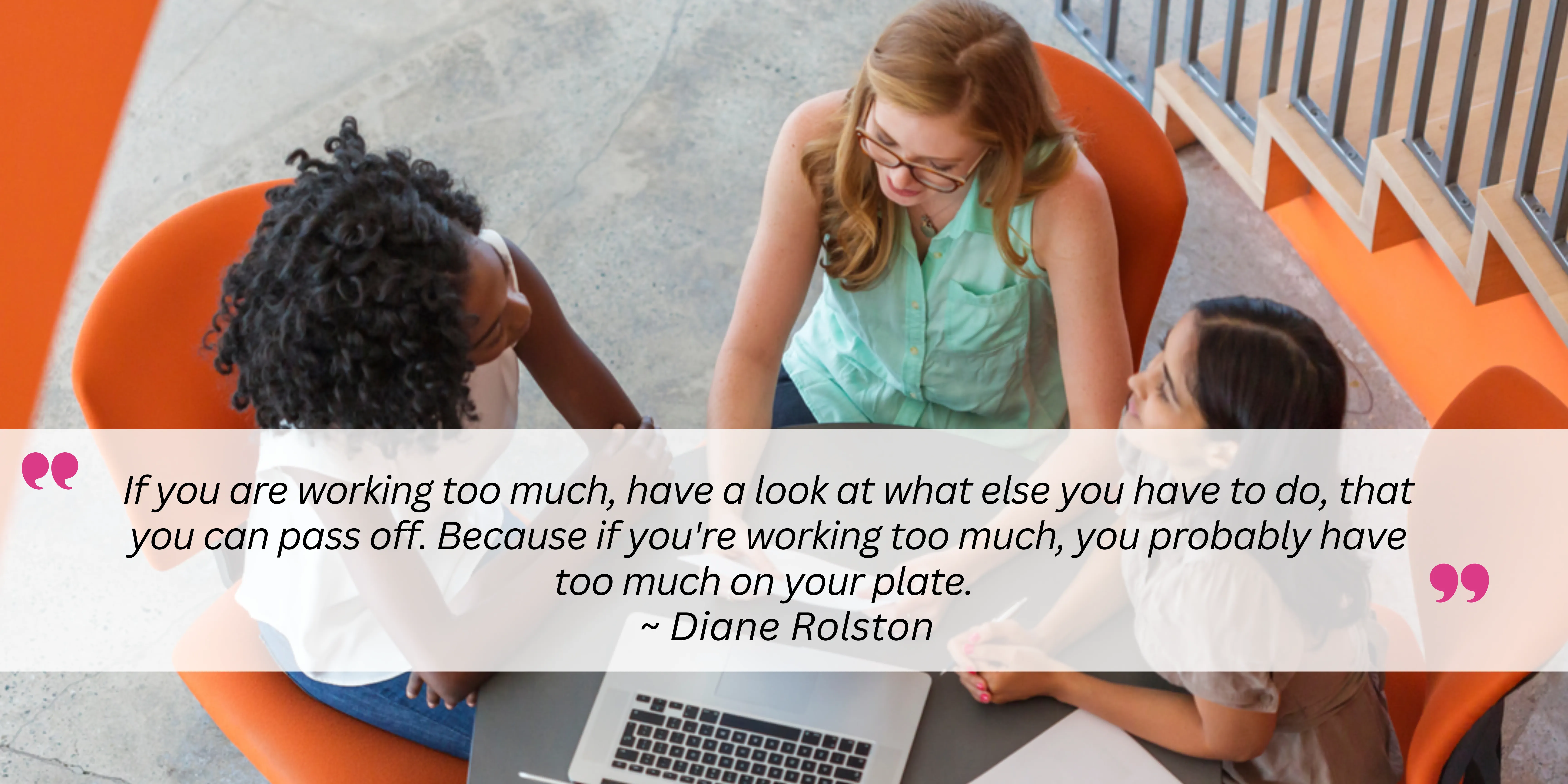 If you are working too much, have a look at what else you have to do, that you can pass off. Because if you're working too much, you probably have too much on your plate.