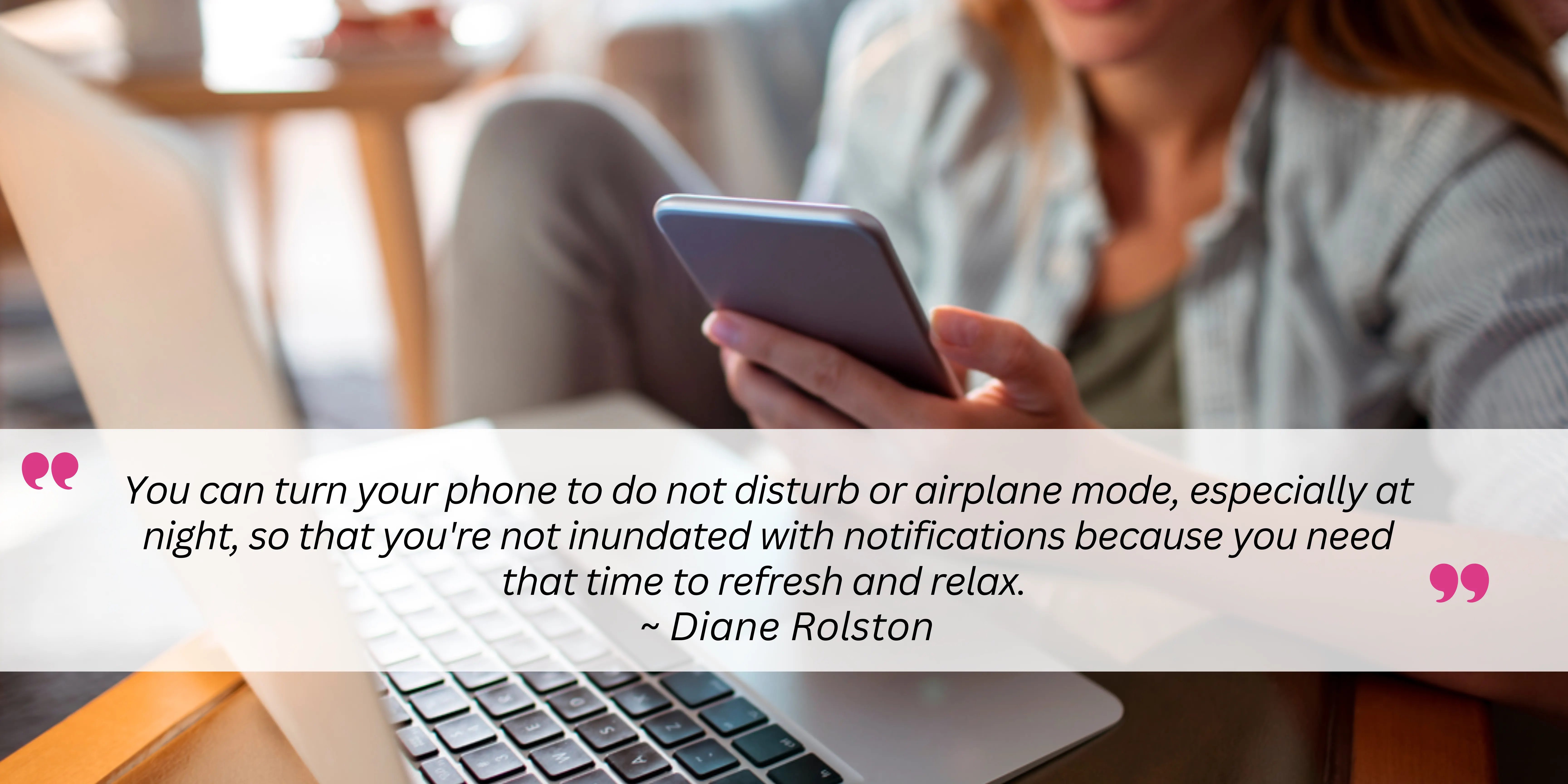You can turn your phone to do not disturb or airplane mode, especially at night, so that you're not inundated with notifications because you need that time to refresh and relax.