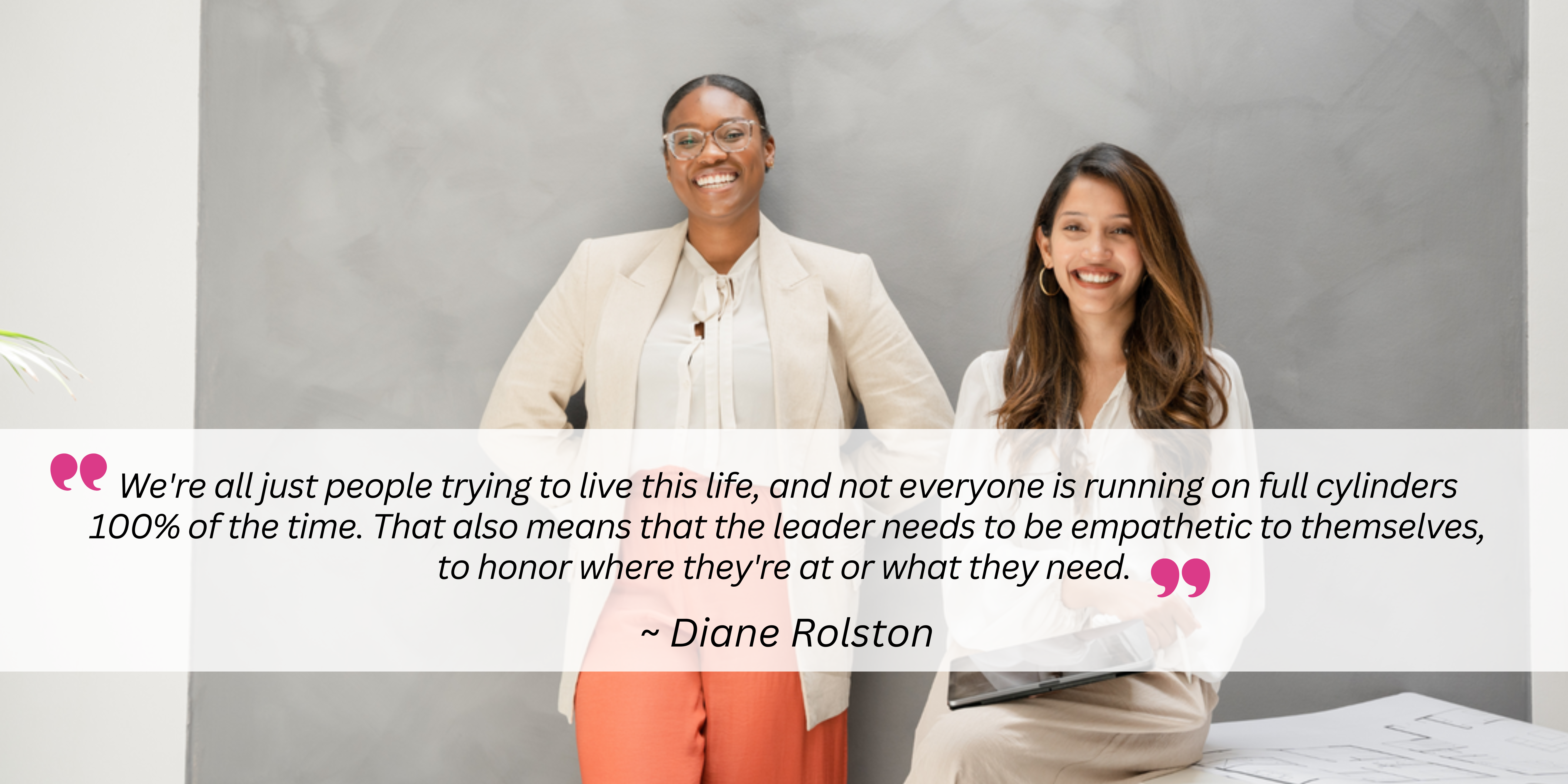 Rather than other people who've just said, “Well, Diane, you need to do this. And this is your problem.” He comes across in such a humble way by modeling it in his actions which taught me and so I use that all the time. That has helped me to tone down in my confidence level as a leader, and so I really appreciated that.