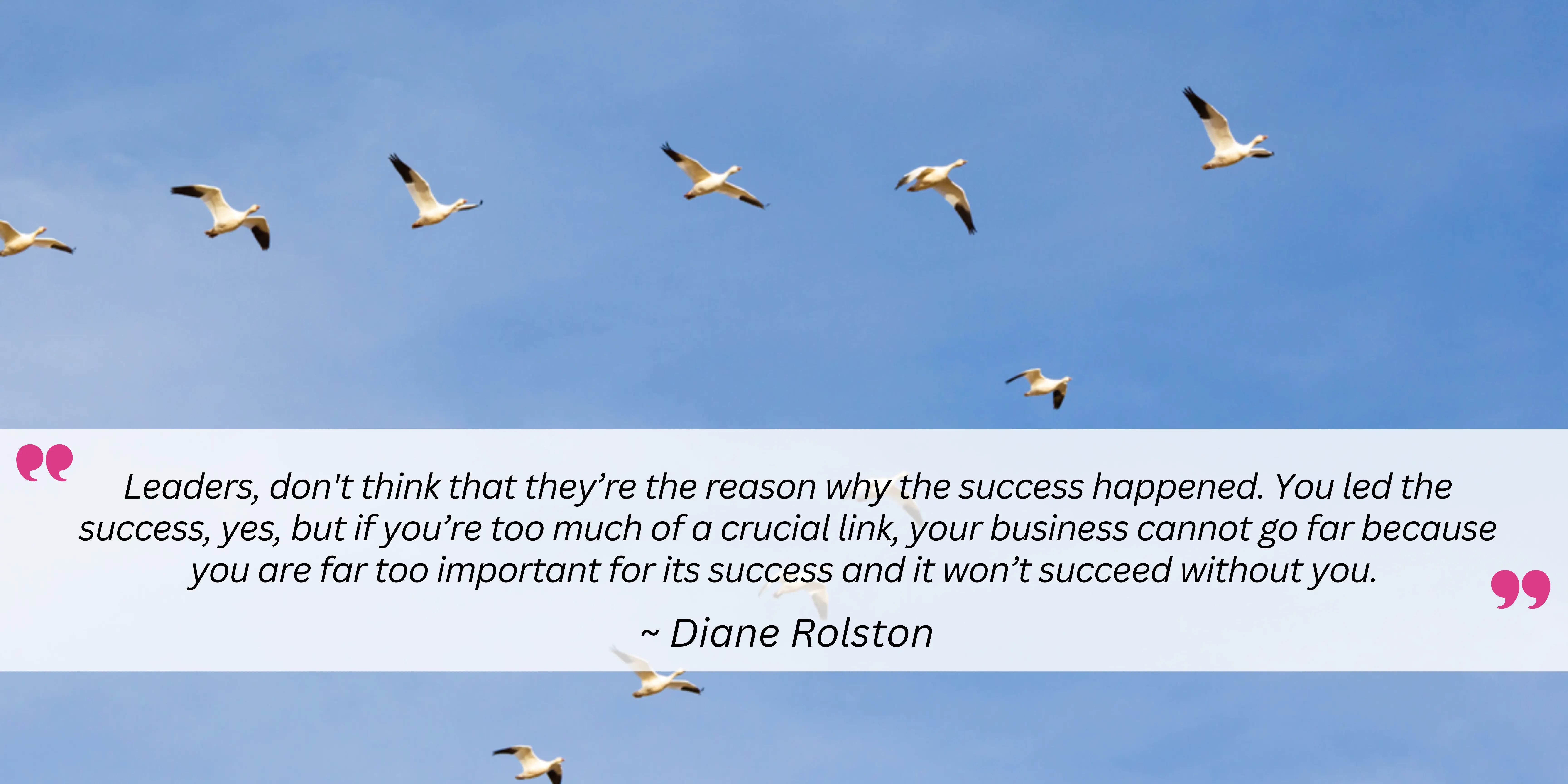Leaders, don't think that they’re the reason why the success happened. You led the success, yes, but if you’re too much of a crucial link, your business cannot go far because you are far too important for its success and it won’t succeed without you. Because what's going to happen is, you are the cog in the wheel. You are the one holding things up. If you are sick, does the ship go under?