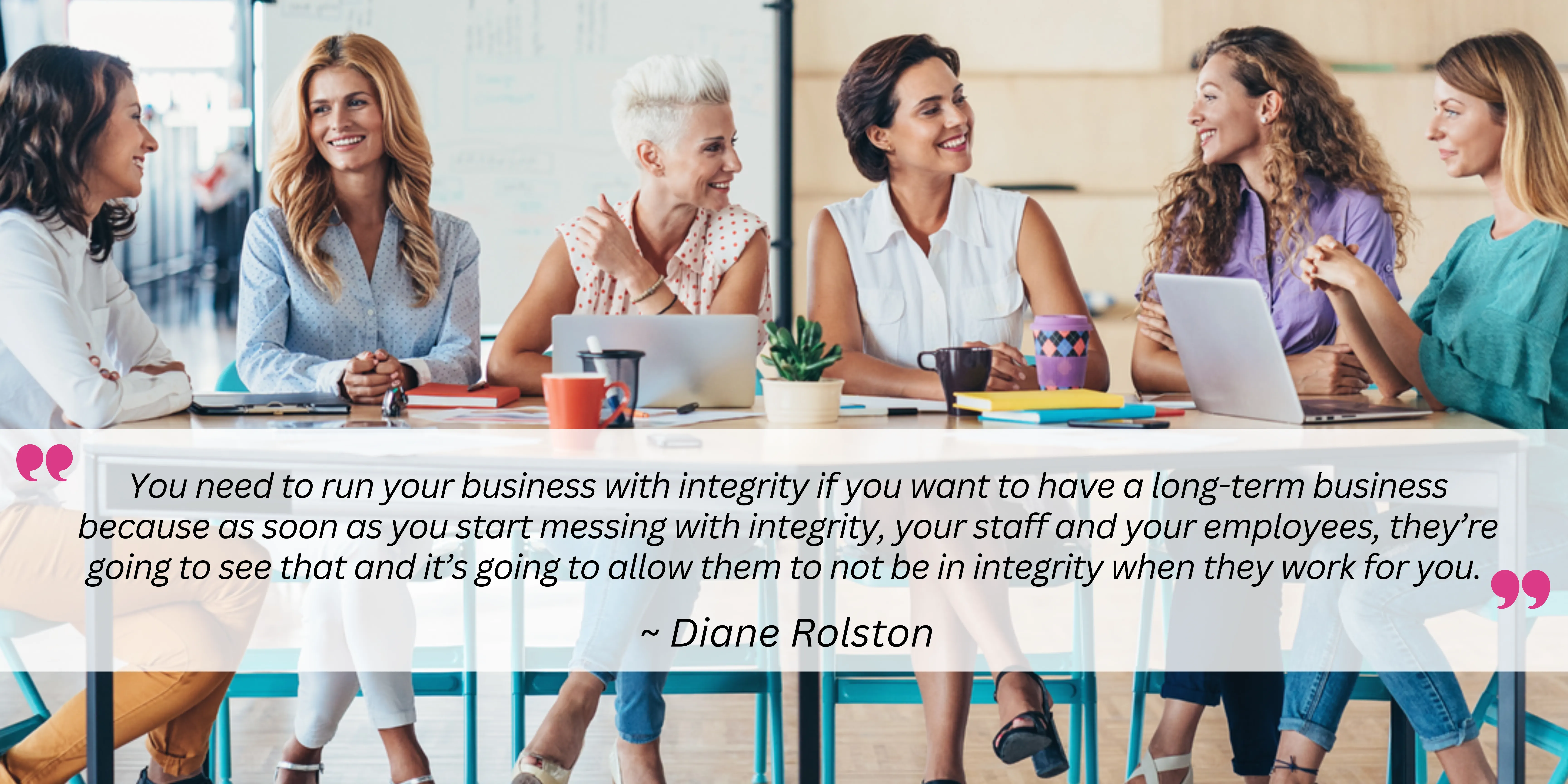Then integrity. You need to run your business with integrity if you want to have a long-term business because as soon as you start messing with integrity, your staff and your employees, they’re going to see that and it’s going to allow them to not be in integrity when they work for you. Then your business won't be running on integrity. There'll be stuff that is happening that is not best business practices, and then it'll be trickling down to your clients.