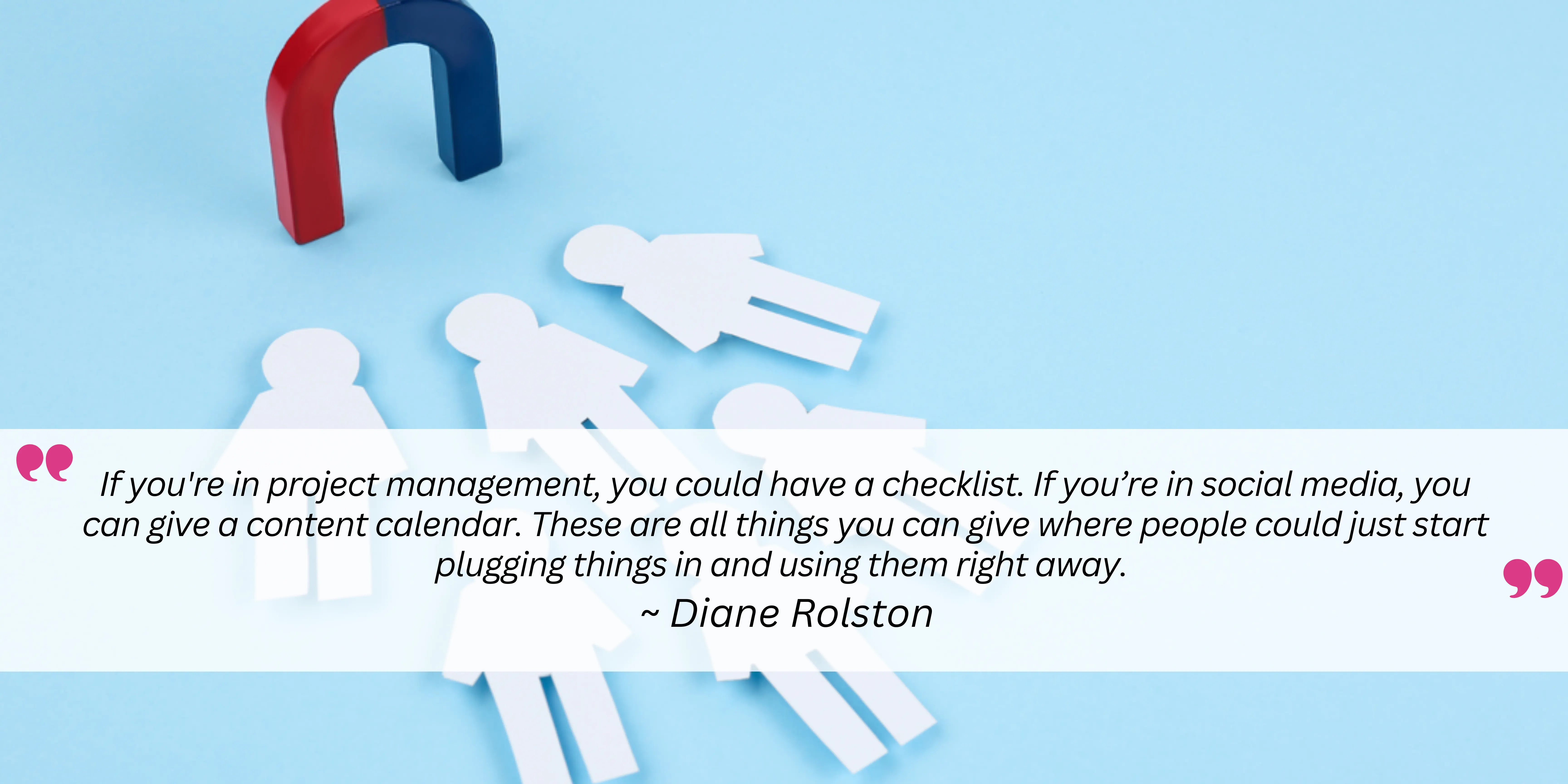 If you're in project management, you could have a checklist. If you’re in social media, you can give a content calendar. These are all things you can give where people could just start plugging things in and using them right away.