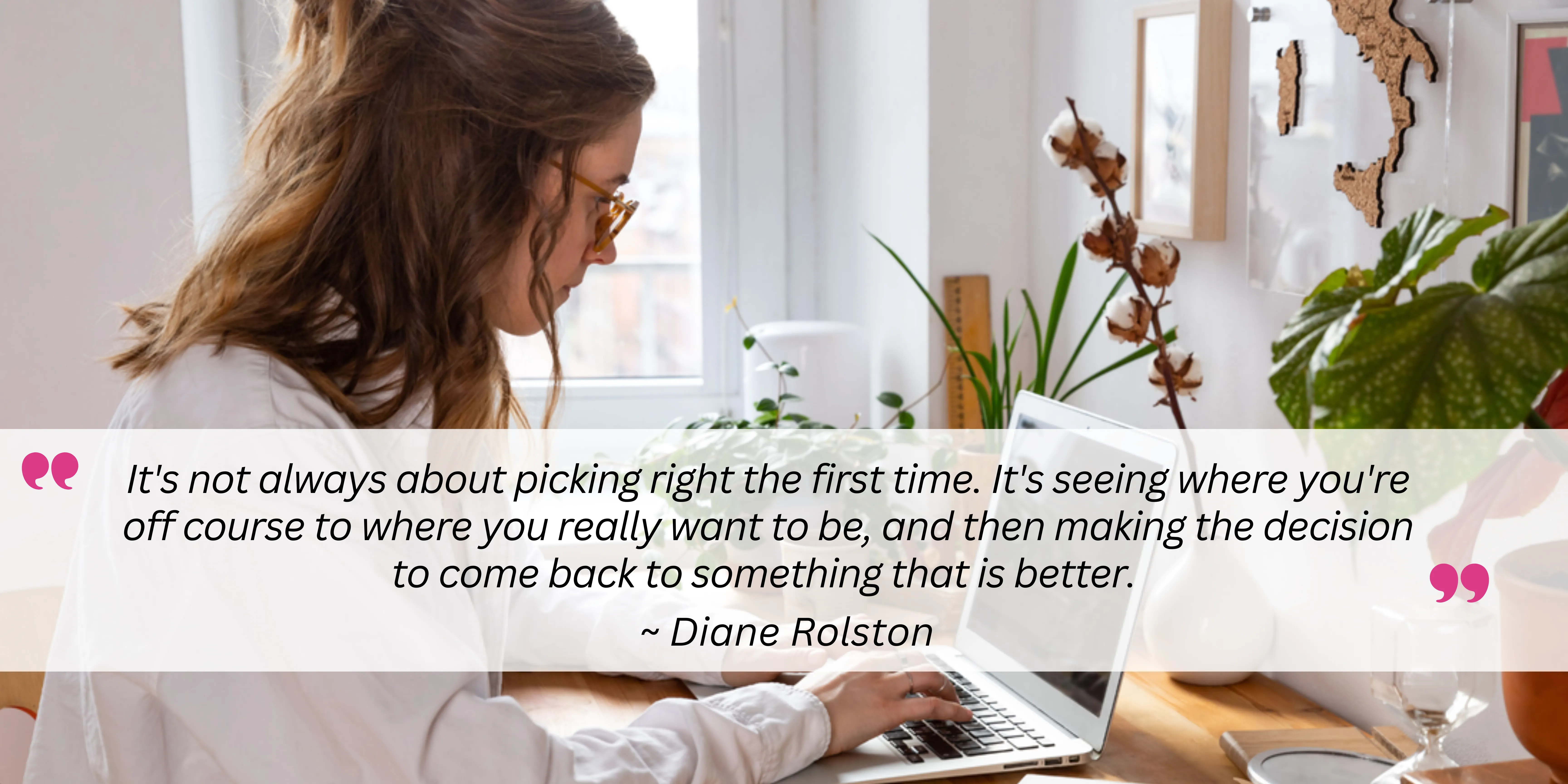 It's not always about picking right the first time. It's seeing where you're off course to where you really want to be, and then making the decision to come back to something that is better. Since we can make a new discovery later on, with more insight, more knowledge, more skill potentially, more connections, more of a network, we only then realize, “Oh, this isn't the right one for me.” You have the experience of it, so you then get to remake your decision based on this new exploration stage or information that you've come up with.
