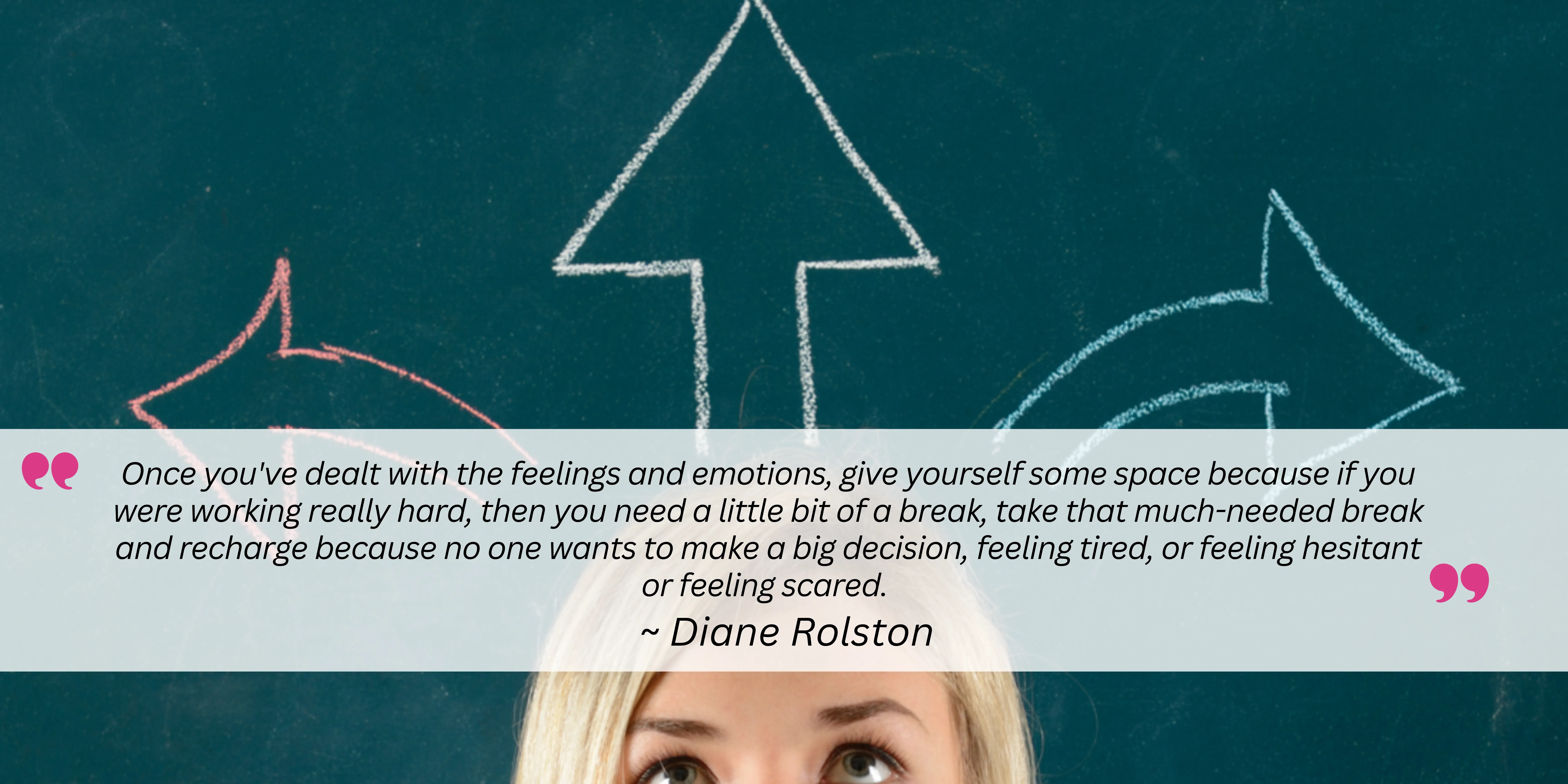 Once you've dealt with the feelings and emotions, give yourself some space because if you were working really hard, then you need a little bit of a break, take that much-needed break and recharge because no one wants to make a big decision, feeling tired, or feeling hesitant or feeling scared.