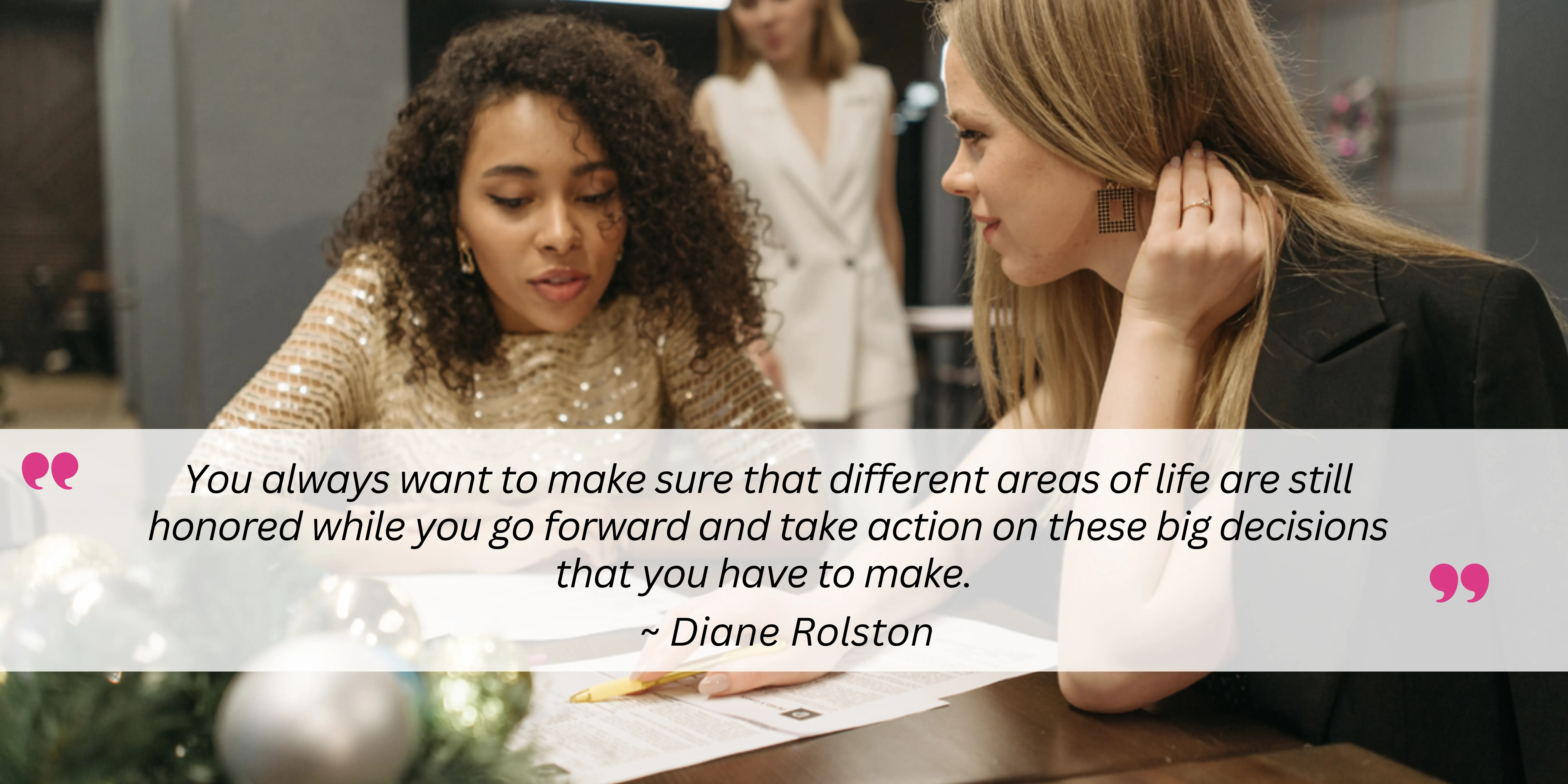 You always want to make sure that different areas of life are still honored while you go forward and take action on these big decisions that you have to make.