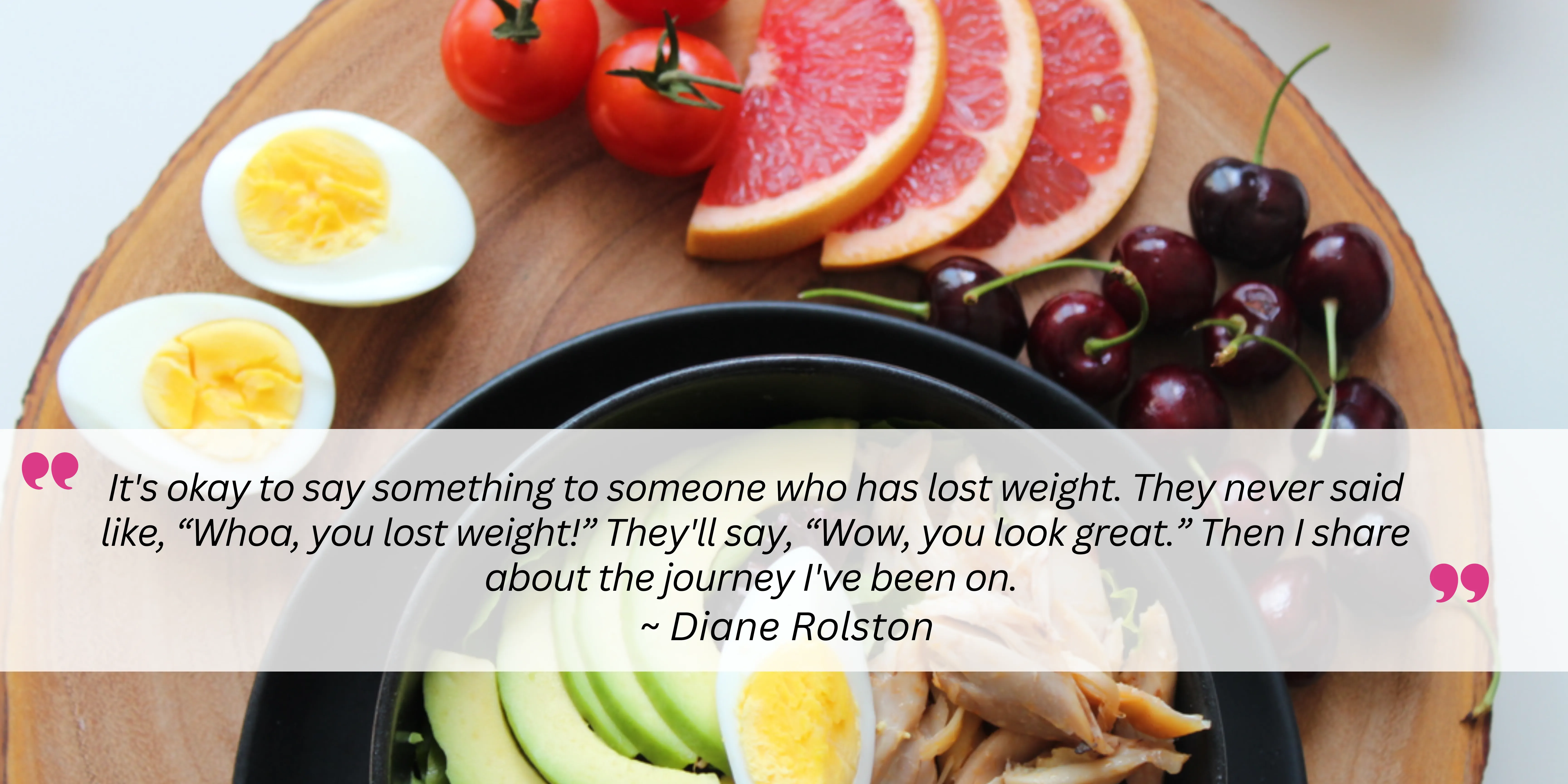 It's okay to say something to someone who has lost weight. They never said like, “Whoa, you lost weight!” They'll say, “Wow, you look great.” Then I share about the journey I've been on.