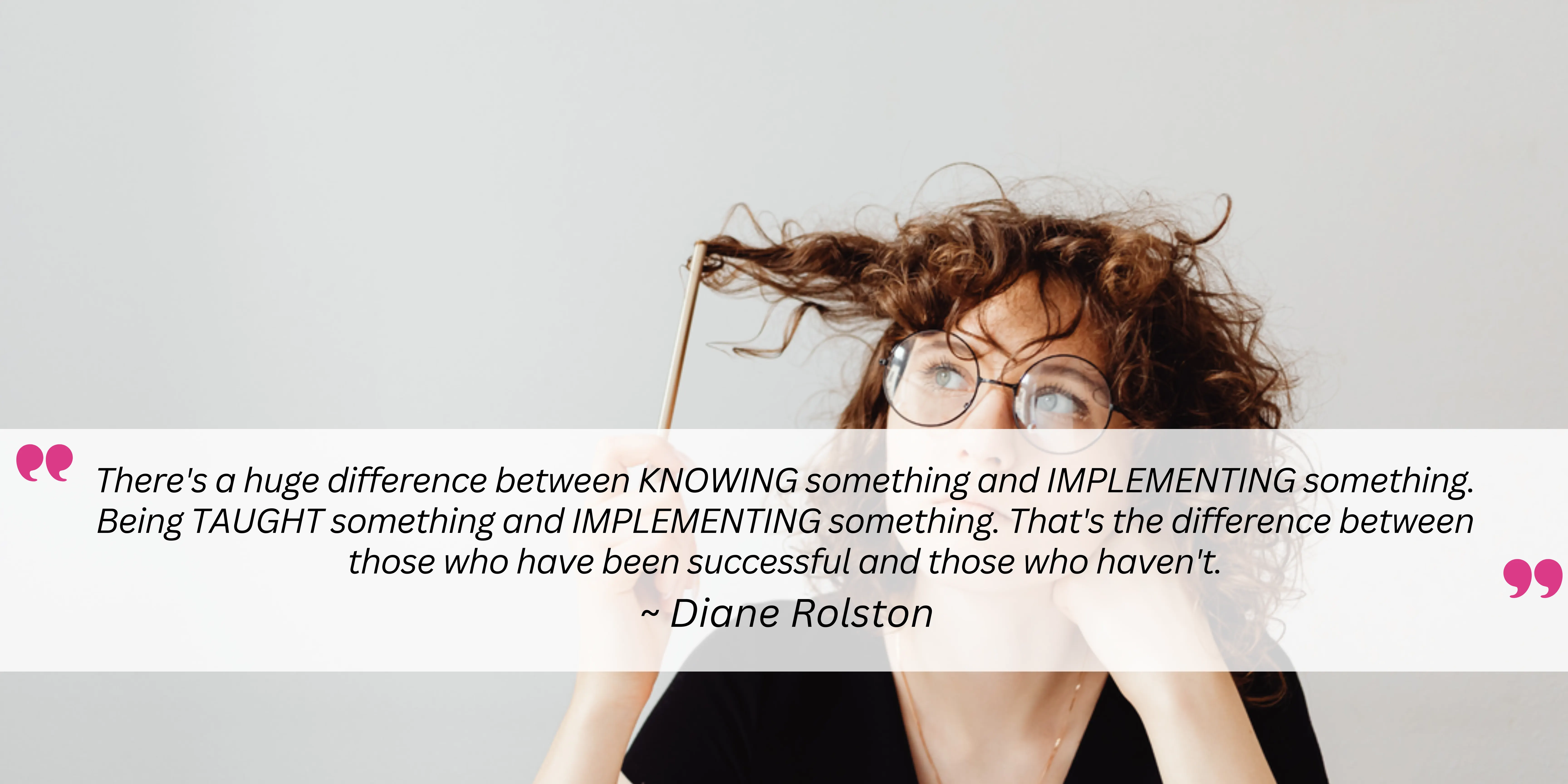 There's a huge difference between KNOWING something and IMPLEMENTING something. Being TAUGHT something and IMPLEMENTING something. That's the difference between those who have been successful and those who haven't.