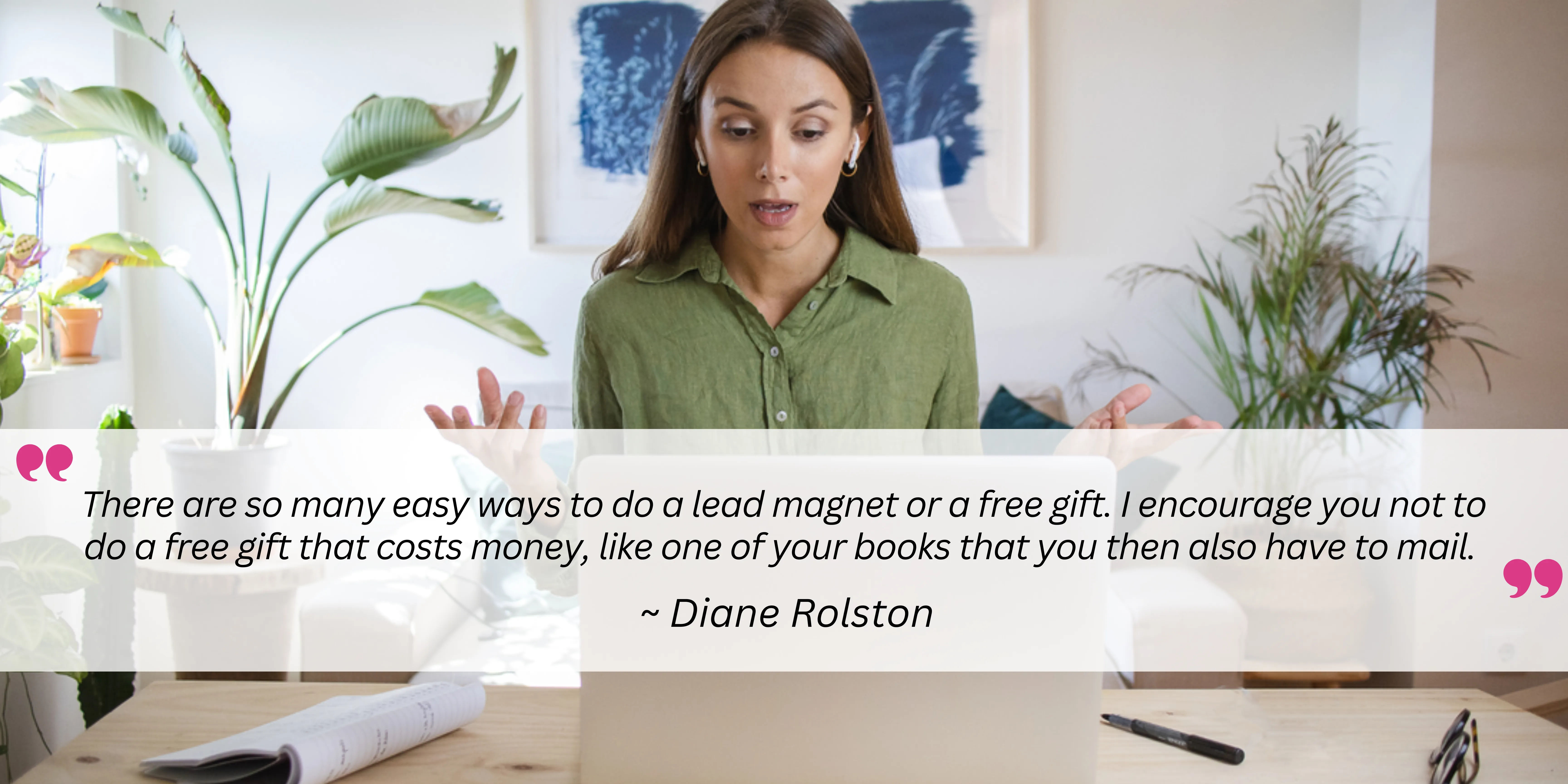 There are so many easy ways to do a lead magnet or a free gift. I encourage you not to do a free gift that costs money, like one of your books that you then also have to mail.