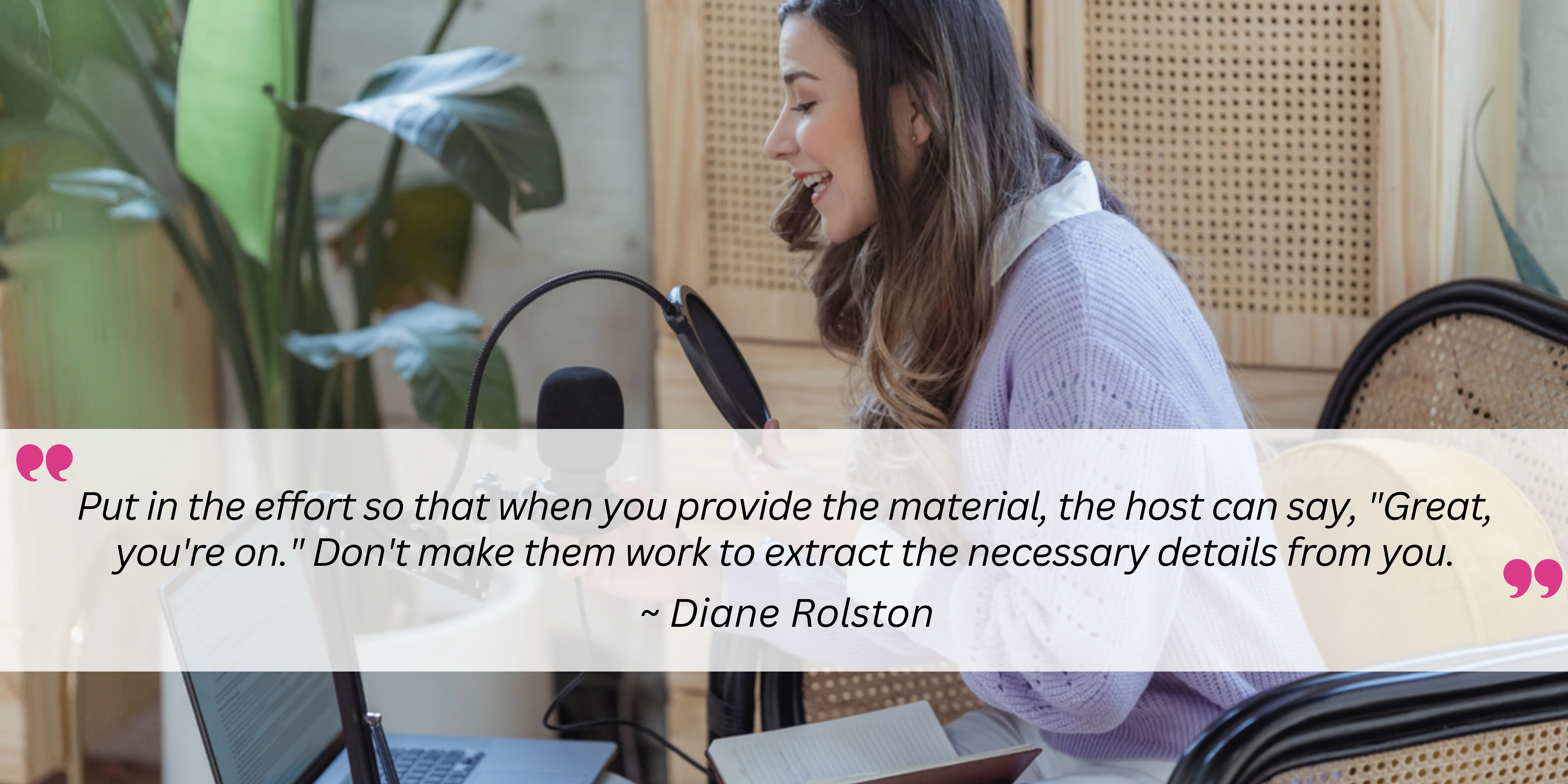 Put in the effort so that when you provide the material, the host can say, "Great, you're on." Don't make them work to extract the necessary details from you.