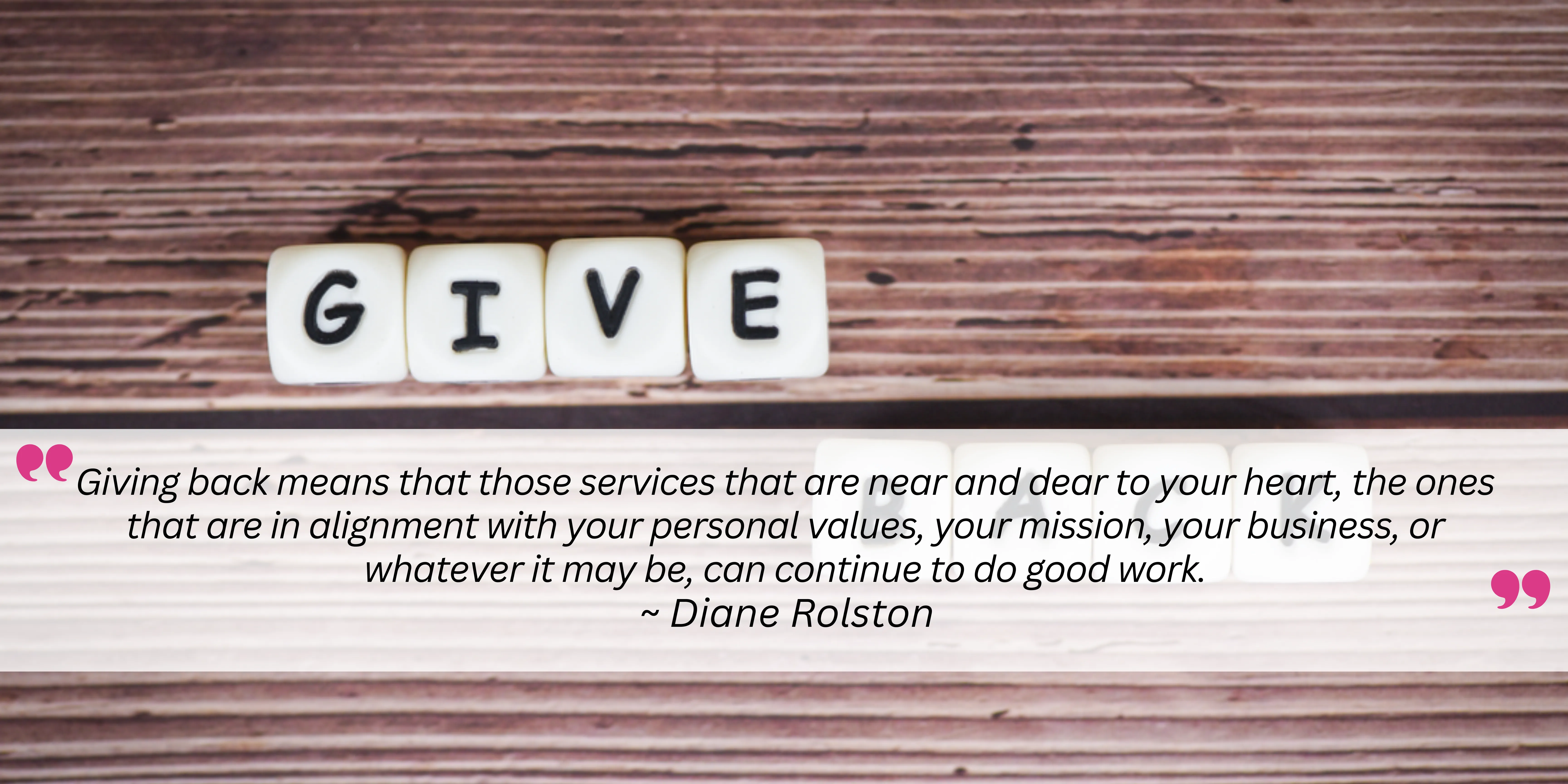 It's important to give back because many organizations will only survive if they have donors and if they have people who are supporting them in one way or another. Giving back means that those services that are near and dear to your heart, the ones that are in alignment with your personal values, your mission, your business, or whatever it may be, can continue to do good work.