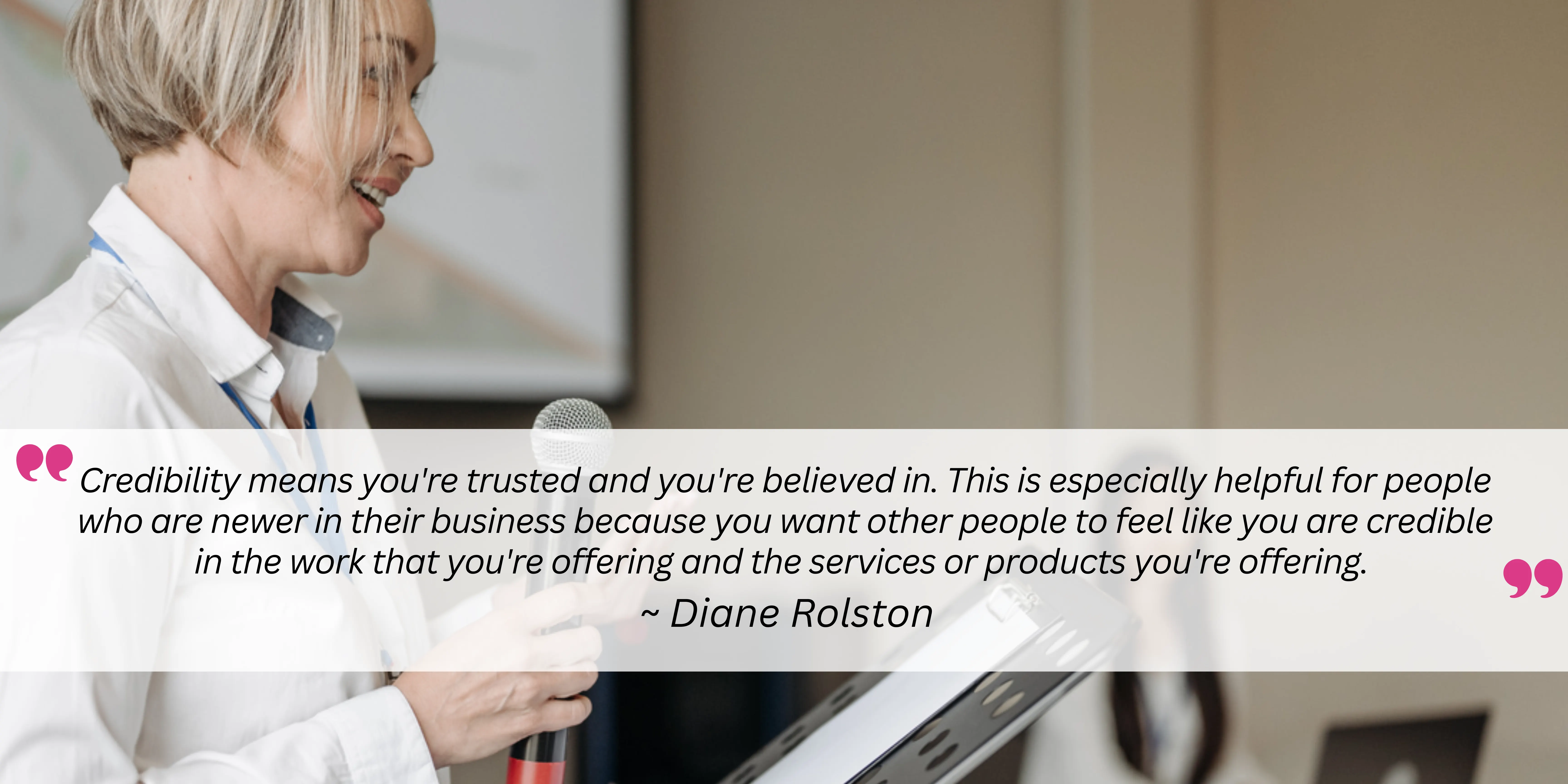 Credibility means you're trusted and you're believed in. This is especially helpful for people who are newer in their business because you want other people to feel like you are credible in the work that you're offering and the services or products you're offering.