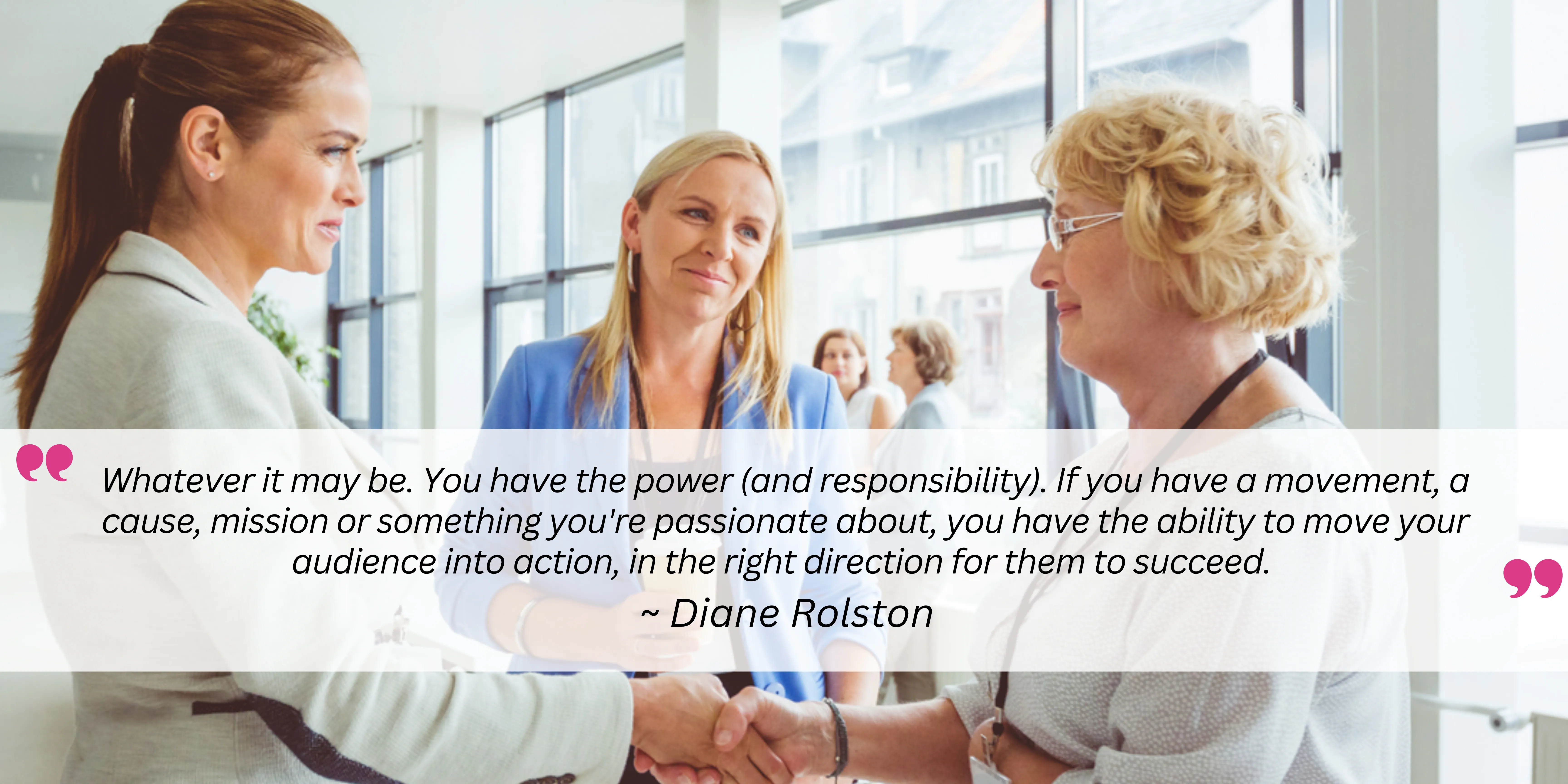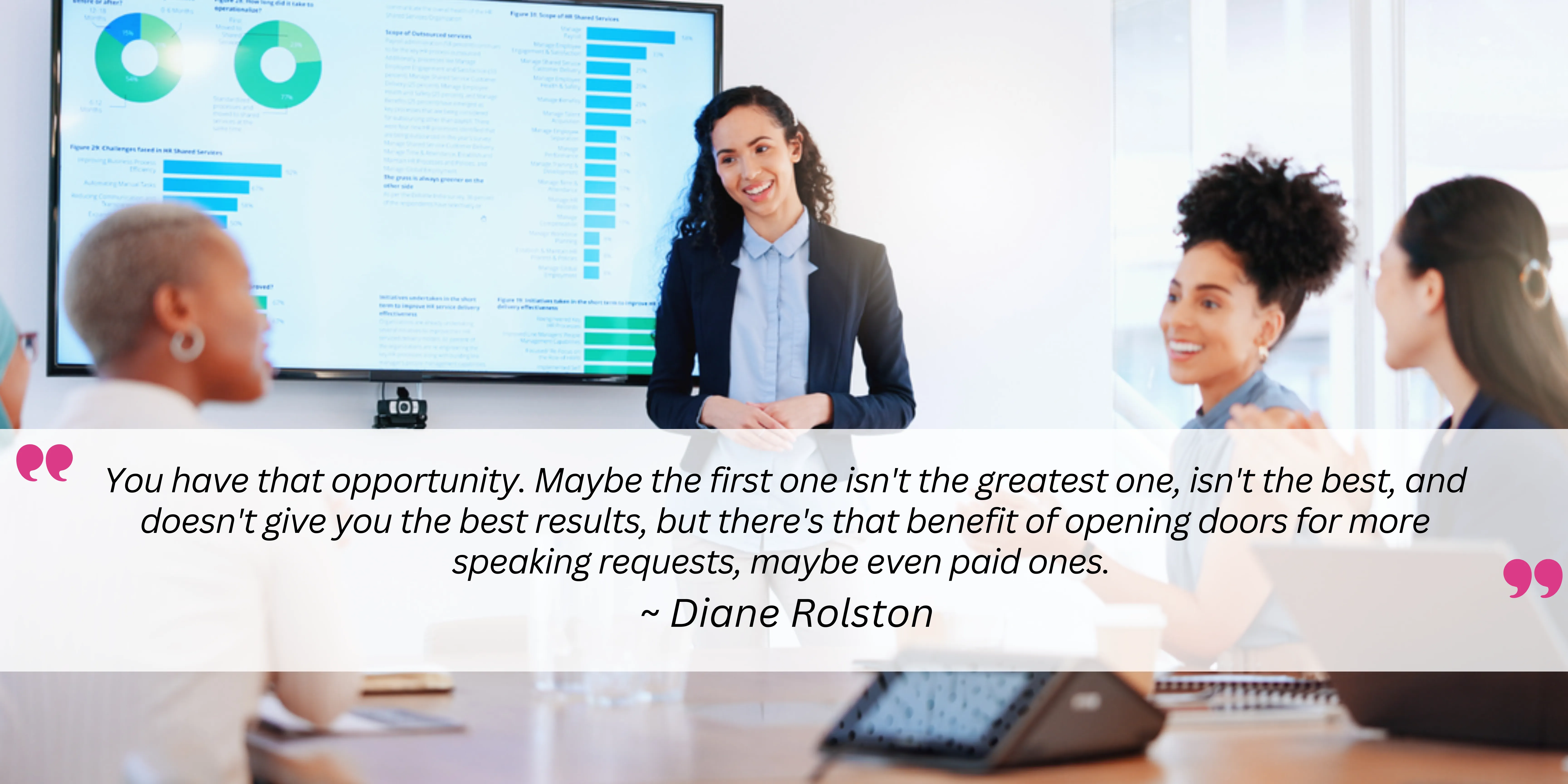 The idea is if you speak in one place, you should be able to get another speaking engagement from that. If you haven't been able to do that yet, let's have a conversation. Feel free to email [email protected] and say, “I'd like to have a free chat with Diane.” They'll send you my booking link.