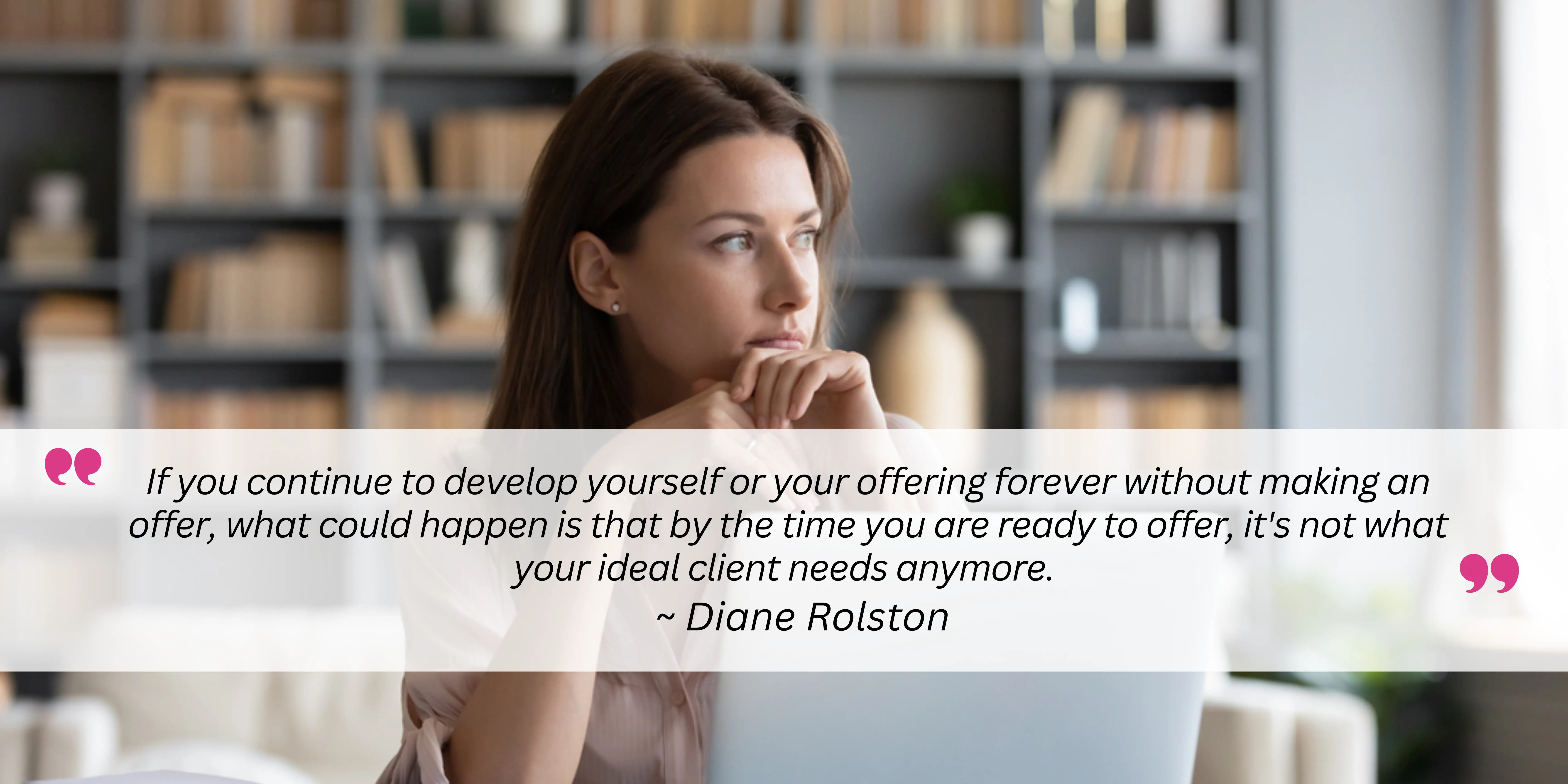 If you continue to develop yourself or your offering forever without making an offer, what could happen is that by the time you are ready to offer, it's not what your ideal client needs anymore.